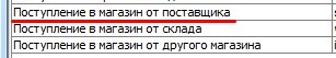 - Поле "Операция" - в этом поле необходимо выбрать вид поступления: 1 - от поставщика, 2 - от склада , 3 - от другого магазина.