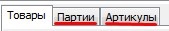 | На форме так же можно отображать список товаров в разрезе партий и по артикулам: |