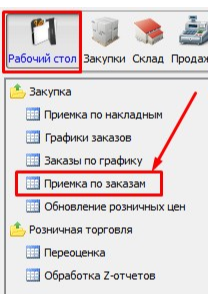 Для удобного приходования Накладных на основе заказов в модуле Рабочий стол используется форма Приемка по заказам