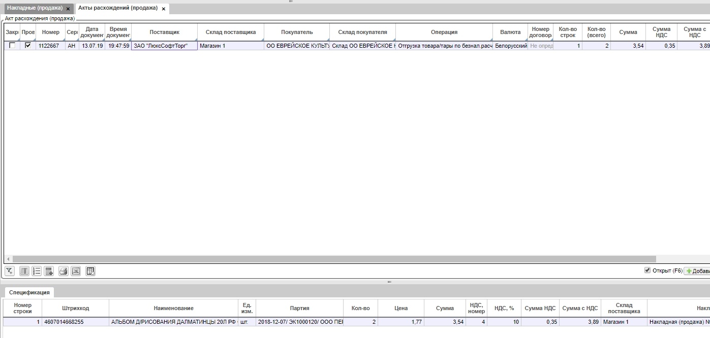 Сформированные акты расхождений по продажам находятся в форме Продажи - Акты расхождений