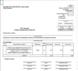 Далее при проведении документа (Приход от поставщика, Возврат поставщику, внутреннее перемещение между магазинами и т.д.) создается документ с аналогичным номером в журнале  списания: