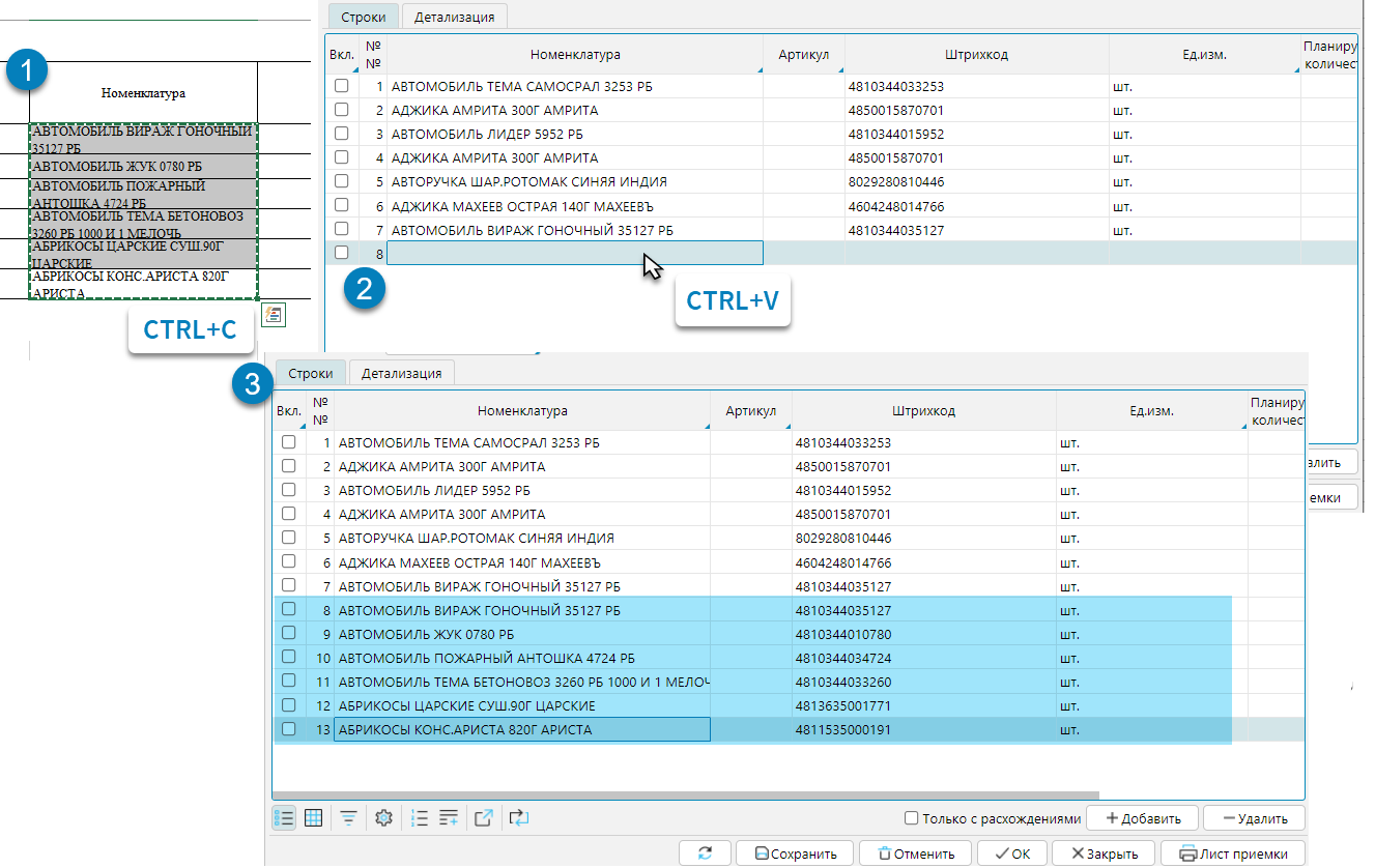 Кроме внесения данных в поля таблицы напрямую, может быть использовано:
