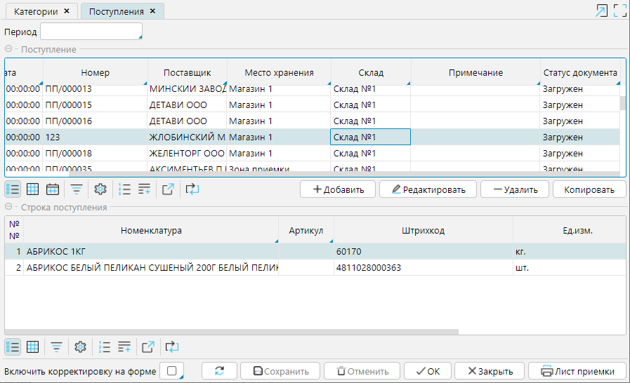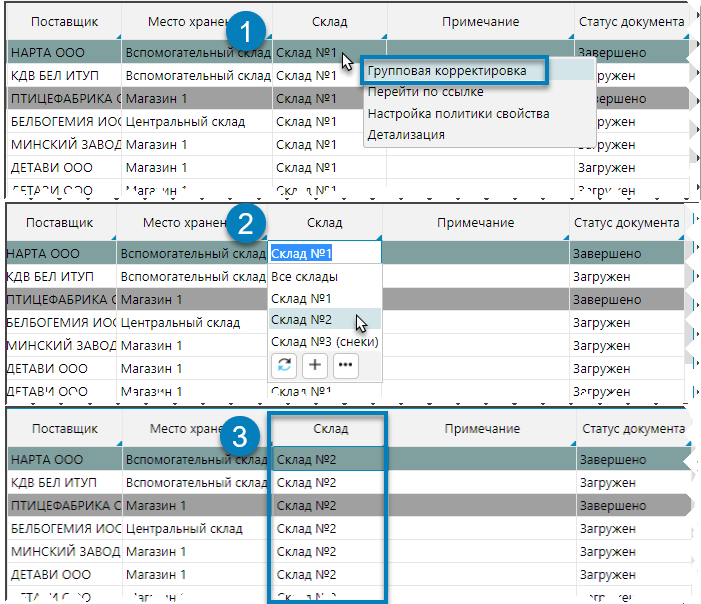 При применении групповой корректировки необходимо включить функцию корректировки на форме (см. Структура формы).