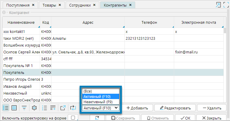 Табличное представление данных является основным в системе, оно используется для ввода данных и работы с ними. Кнопка переводит представление данных в табличное.