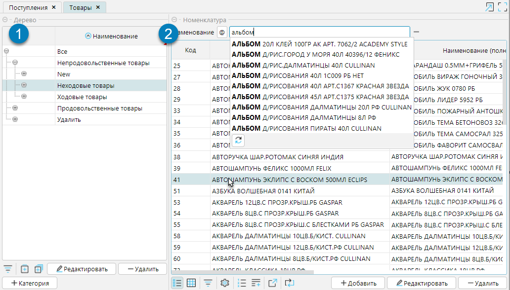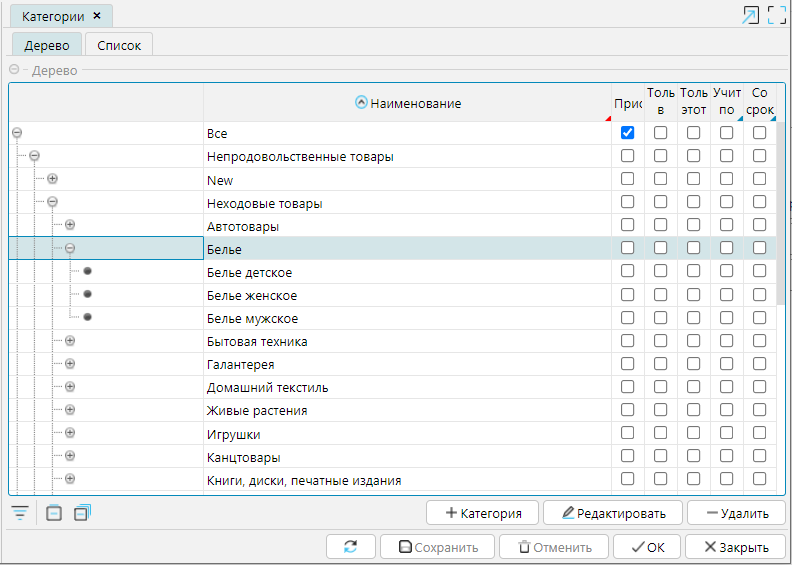 Это представление служит для отображения и создания объектов с иерархической структурой, в основном это категории объектов, например, товарные группы.