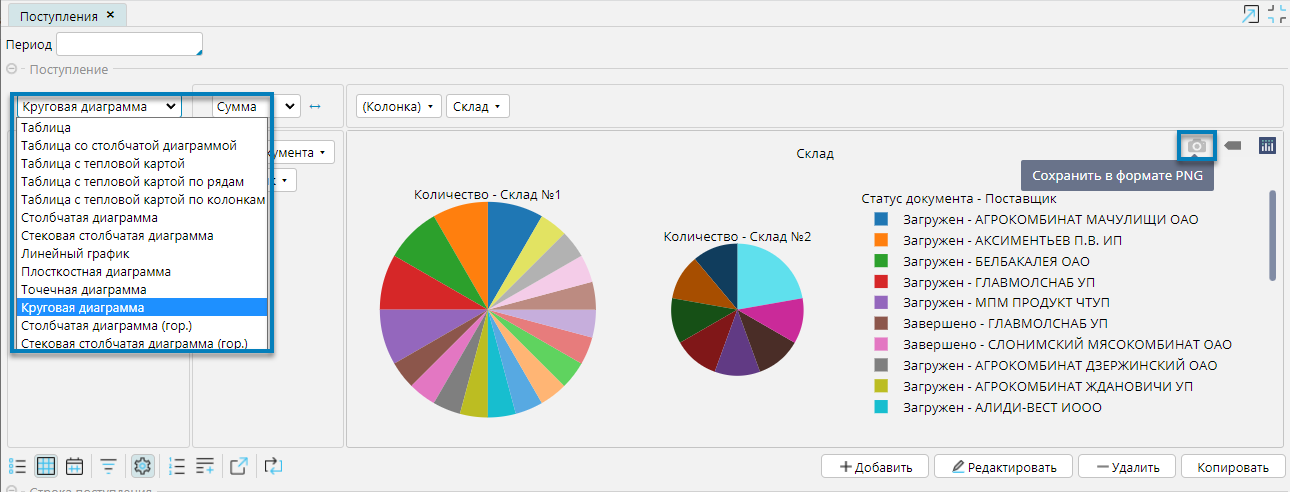 Полученные сводные данные можно визуализировать с помощью тепловых карт и различных диаграмм (рис. 11), которые можно экспортировать в отдельное изображение. Кнопка в режиме сводной таблицы управляет отображением настроек таблицы (рис.12).