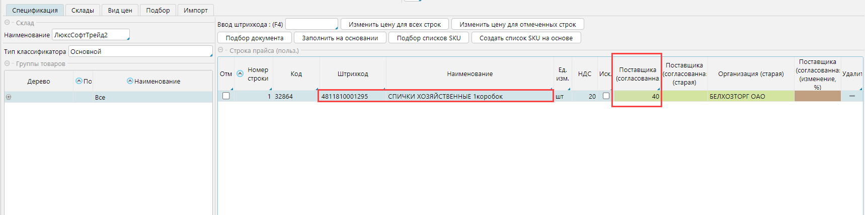 В колонке «Поставщика (согласованная)» указываем цену за количество товара в упаковке, в которой он приходит.