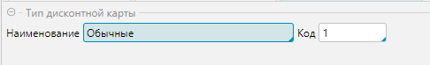 На форме дисконтной карты настраиваются и отображаются следующие параметры.