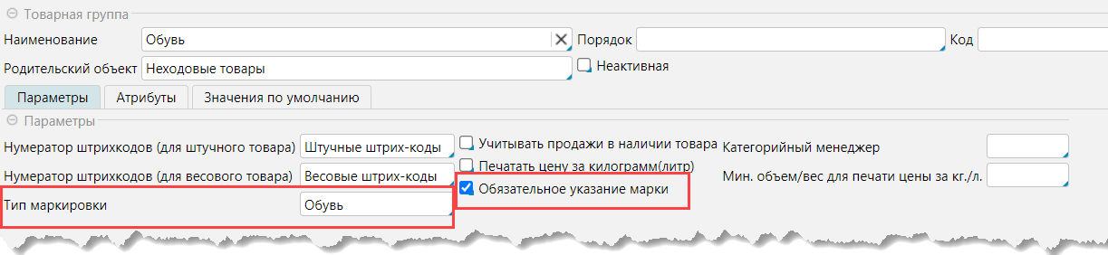 - Признак Обязательно указание марки - с этим признаком программа не позволит сохранить/провести документ без указанной марки.