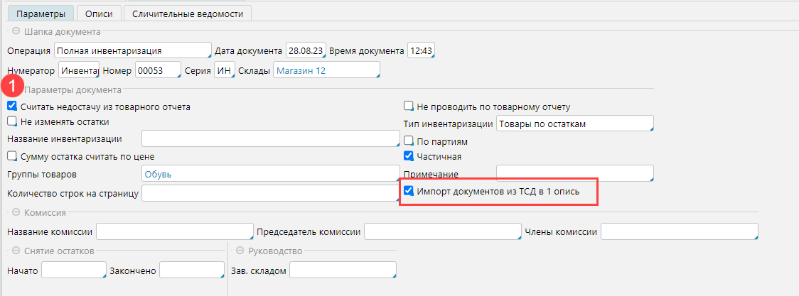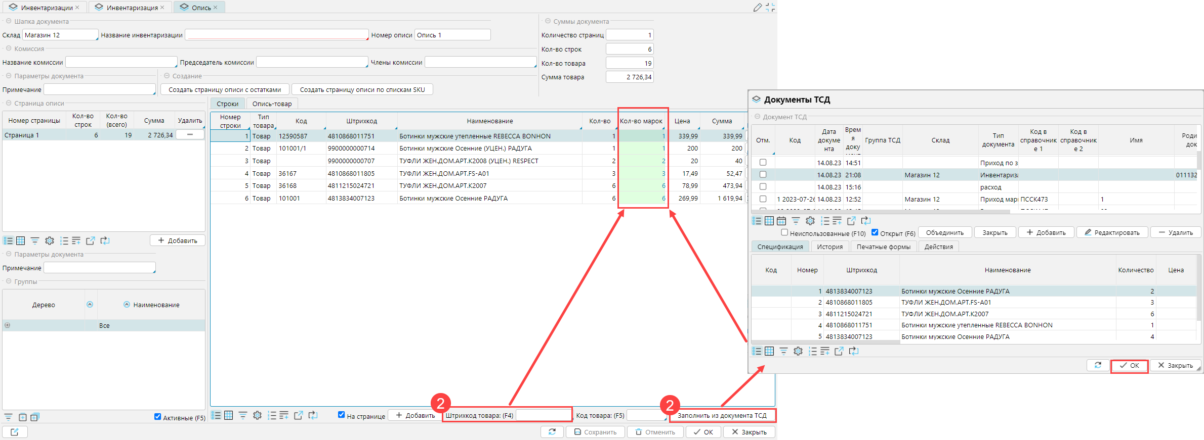 Если вы проводите инвентаризацию маркированного товара, то в документе можно также инвентаризировать и марки: