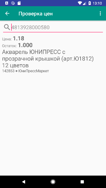 Позволяет получать информацию о цене и других характеристиках товара в торговых залах. Товар можно как сканировать сканером, так и выбрать из списка кнопкой поиска .