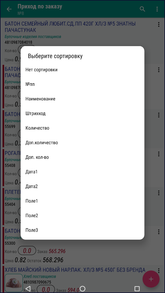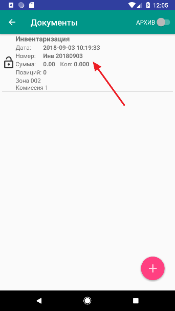 После ввода последнего поля введенная информация будет записана в документ, и программа перейдет в режим ожидания ввода нового товара. Чтобы попасть обратно в табличную часть документа необходимо нажать кнопку Назад .