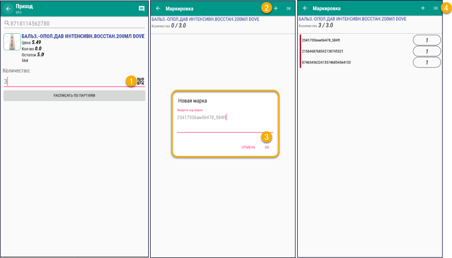 Чтобы была возможность сканировать коды маркировки (далее КМ) товаров в документ, необходимо включить флаг Маркировка товара для вида операции. При сканировании товара будет доступно сканирование КМ: