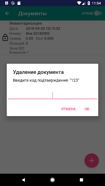 Для выгрузки или удаления документа его необходимо закрыть кнопкой . Для выгрузки документа нужно нажать . Для удаления документа необходимо нажать кнопку и подтвердить удаление на следующем экране: