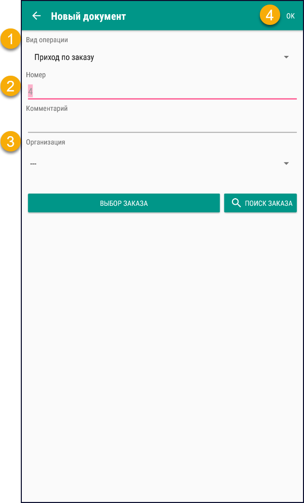 Для создания нового документа необходимо на экране списка документов нажать кнопку . Далее на экране создания документа необходимо: