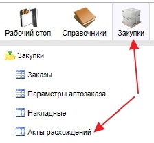 Сформированные акты расхождений по закупкам находятся в форме Закупки - Акты расхождений