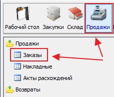 Заходим на форму "Заказы" - в модуле "Продажи" раздел "Закупки".