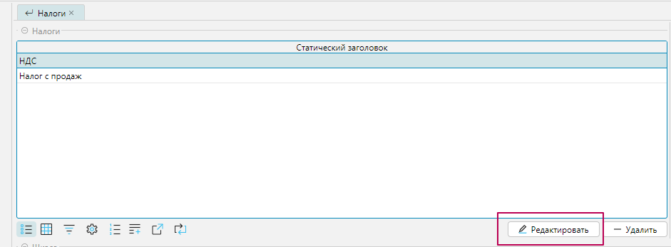 Для добавления новой ставки НДС, нужно курсор установить на строку "НДС" и нажать на кнопку “Редактировать”