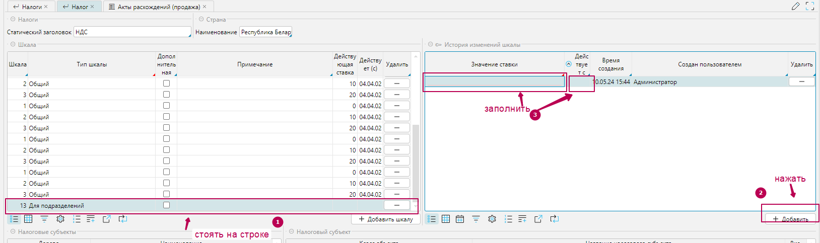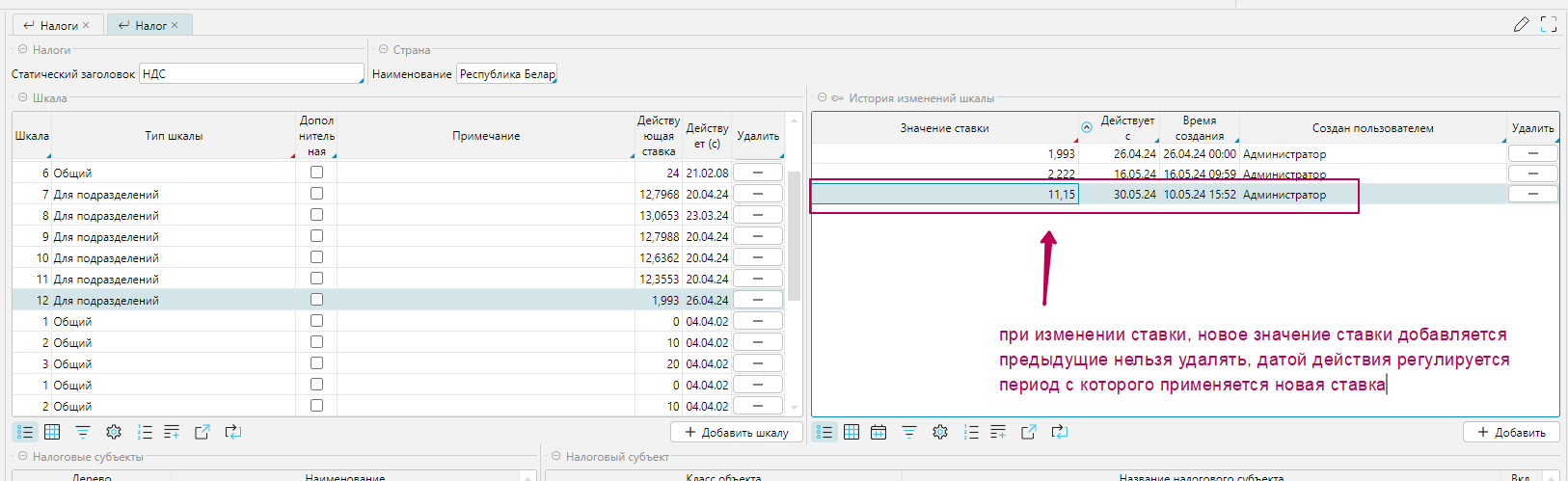 Внимание! Предыдущие значения шкалы удалять нельзя. Если ставка изменилась, то добавляется еще одно значение этой же шкалы с датой начала действия