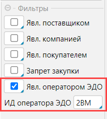 Организация, которая является оператором ЭДО, должна быть заведена в справочнике организаций. Для нее обязательно должен быть указан признак Явл. оператором ЭДО и указан ИД оператора ЭДО - идентификационный номер организации оператора ЭДО. Список доверенных операторов юридически значимого электронного документооборота можно найти на сайте ФНС России.