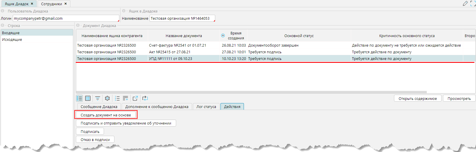 На основании электронного документа создается УПД или УКД от поставщика, в зависимости, какой электронный документ пришел. Нужно выделить сообщение и нажать Создать документ на основе. Будет создан УПД или УКД, который можно просмотреть на форме Документы - УПД/УКД.
