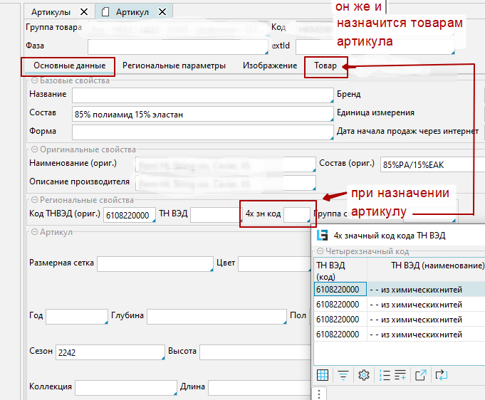 4. В Артикуле: при назначении 4-значного кода артикулу, он наследуется товарами артикула, если у них не назначен 4-значный код.