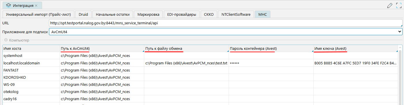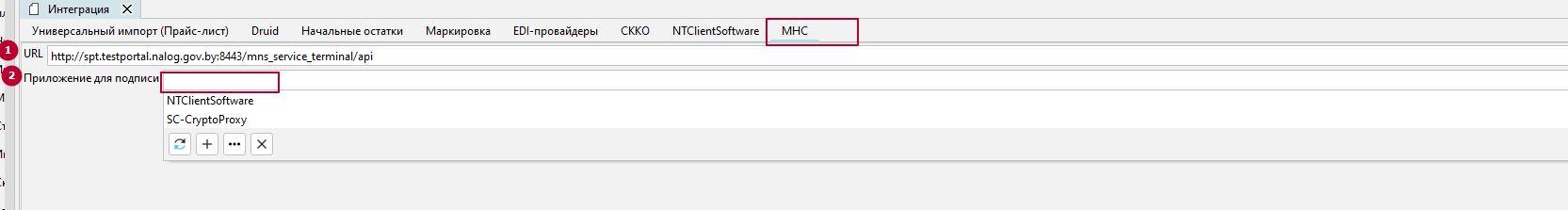 1. На форме Администрирование - Интеграция вкладка МНС указать путь подключения к СПТ и выбрать приложение для подписи.