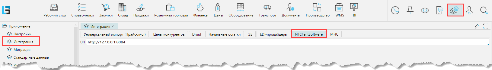 3. На форме Администрирование - Интеграция вкладка NTClientSoftware указать путь и порт подключения к NTClientSoftware
