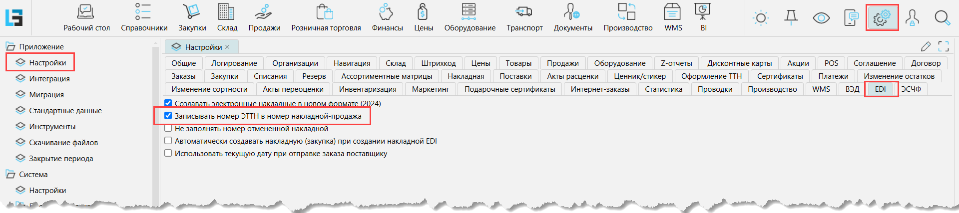 Если необходимо, чтобы номер накладной в системе совпадал с номером электронной накладной, нужно на форме Администрирование - Настройки на вкладке EDI отметить признак  Записывать номер ЭТТН в номер накладной-продажа.