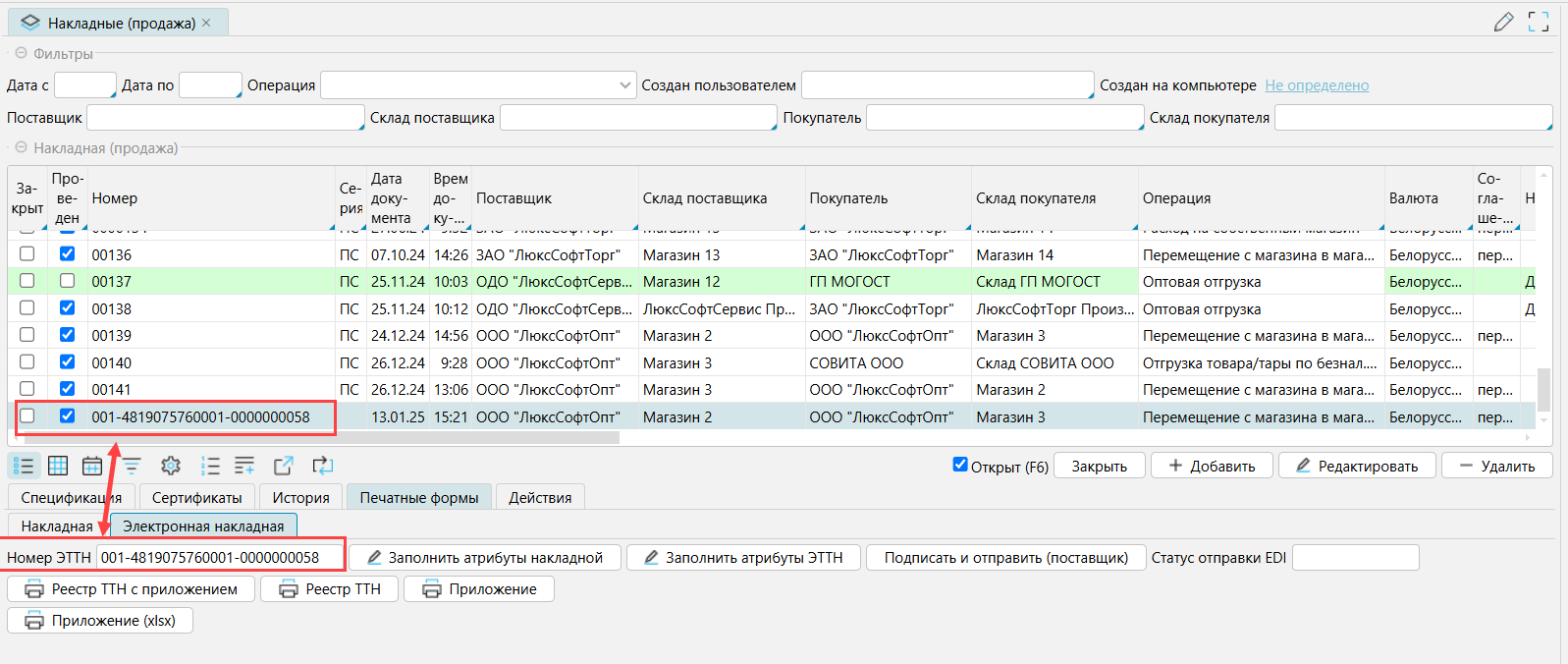 Тогда при формировании электронной накладно номер накладной в системе будет заменен на номер электронной накладной: