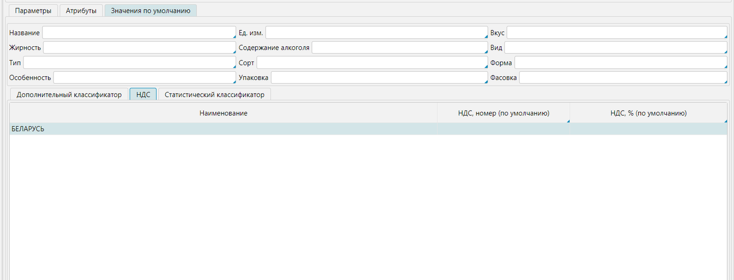 На вкладке Значения по умолчанию для некоторых атрибутов товара данной группы можно задать значения, которые будут подставляться в карточку нового товара или при назначении имеющемуся товару данной группы
