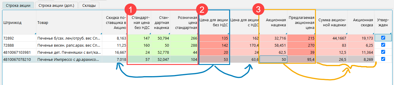 Цена для акции без НДС - цена (без НДС) закупки у поставщика акционного товара