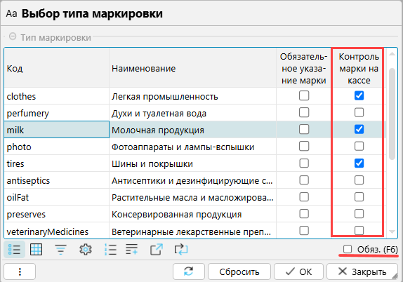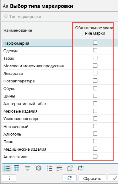Рис. 3 Признак Обязательное указание марки на уровне типа маркировки