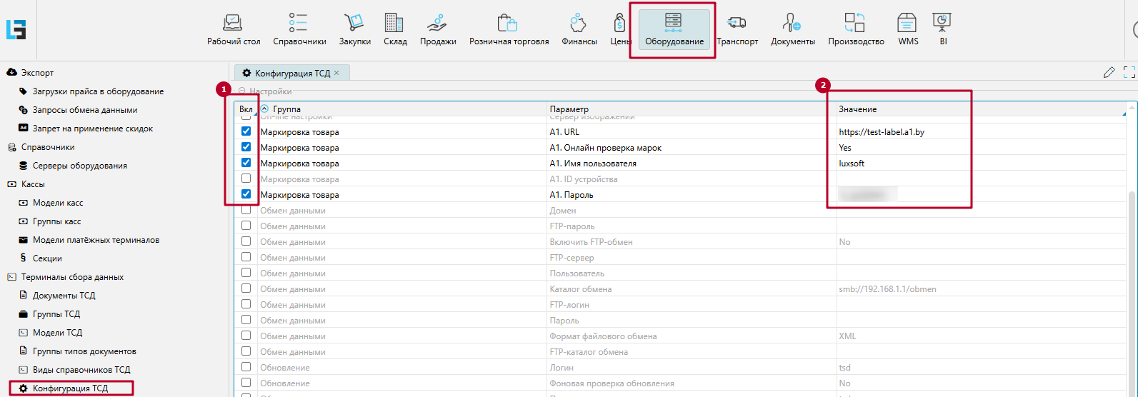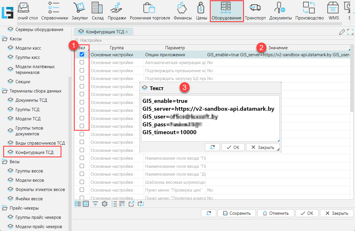Для того, чтобы воспользоваться такой возможностью нужно иметь регистрацию в ГИС "Электронный знак" и настроить подключение для ТСД в системе: