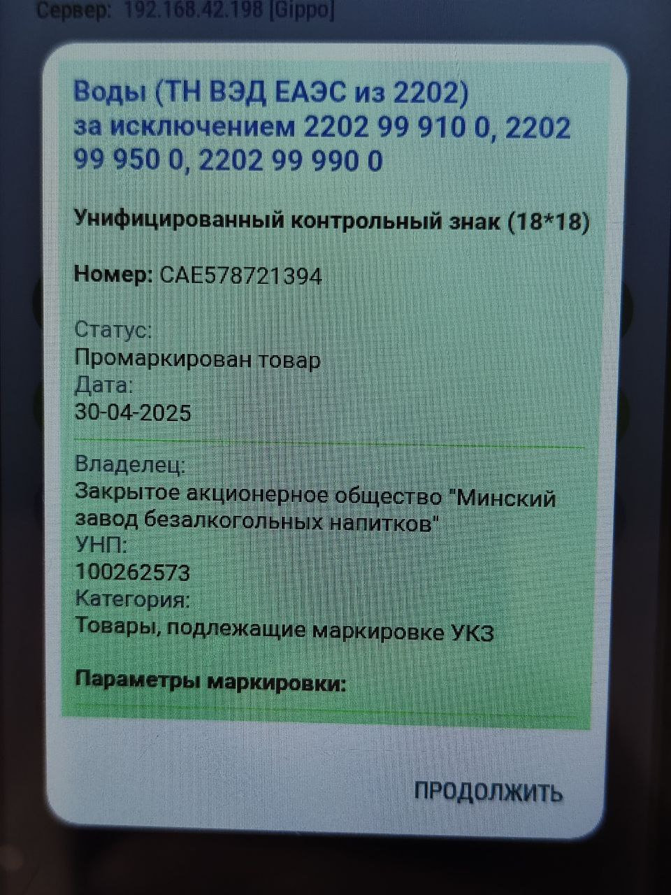 При работе с ТСД реализована возможность проверки статуса марок. Проверять марки можно через ГИС "Электронный знак" или через сервис «Цифровой помощник кассира».