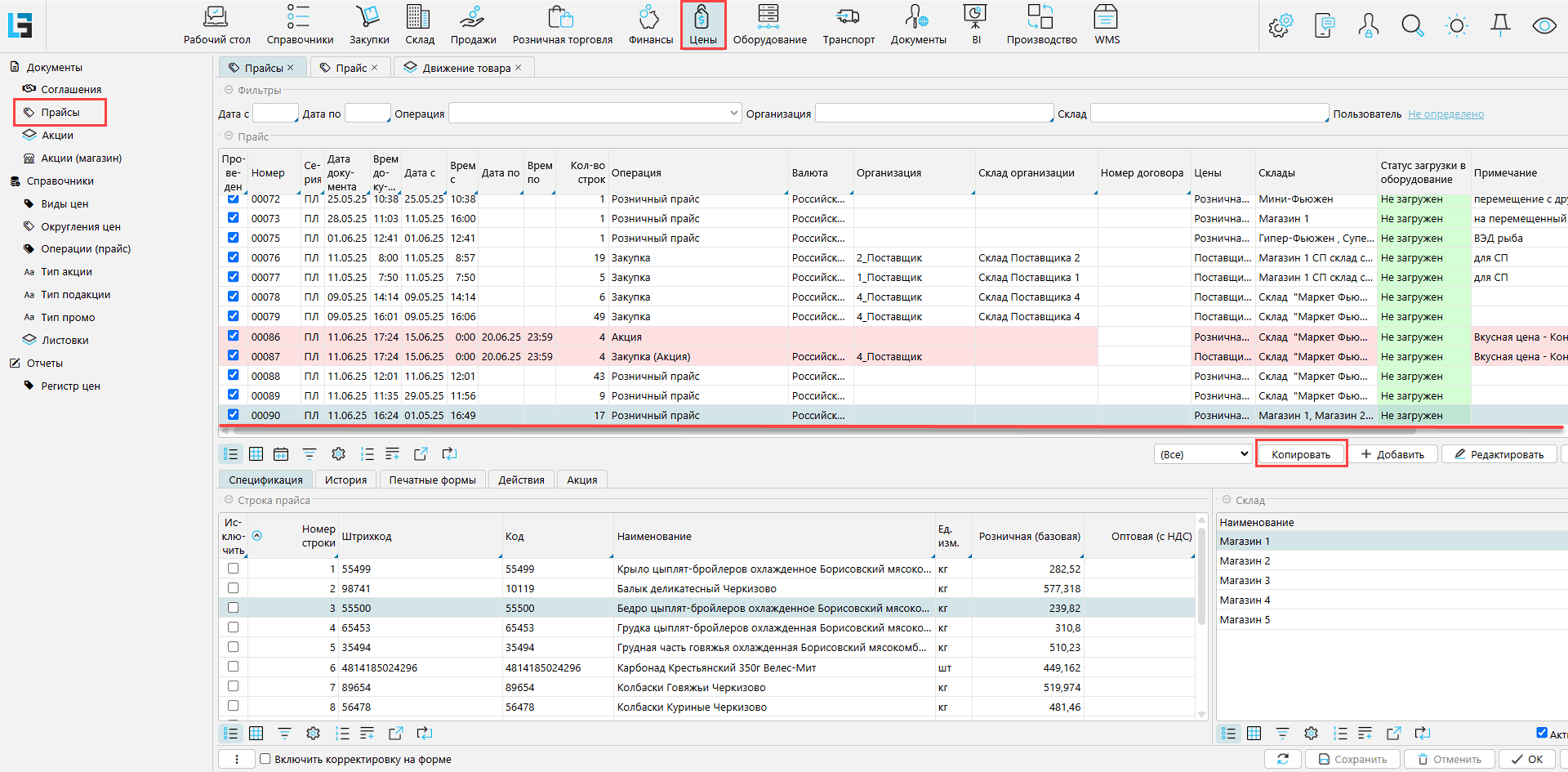 Когда приходит время изменить цену, установленную прайсом, нужно создать новый прайс и внести новые цены. Чтобы упростить и ускорить выполнение этой задачи, в lsFusion ERP предусмотрен механизм копирования прайсов и и изменения цены на основании действующей.