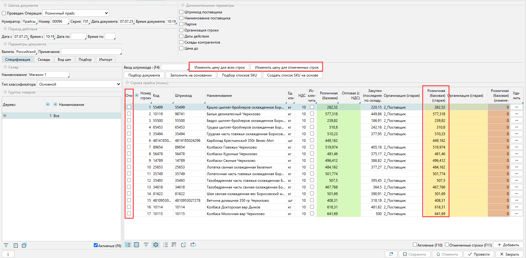 Не забудьте установить подходящий период действия нового прайса и  провести прайс, чтобы он вступил в силу.