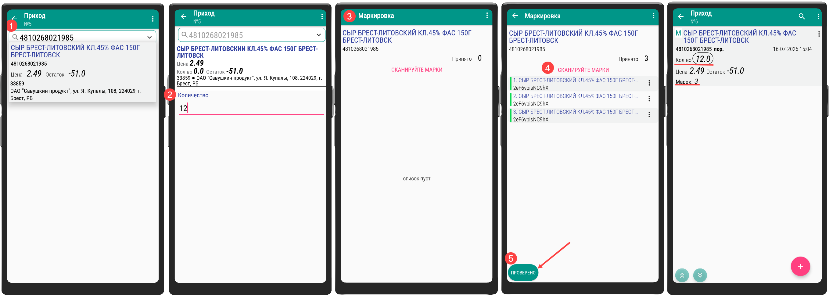 Рис. 4 Добавление в документ ТСД товара по доверительной приемке