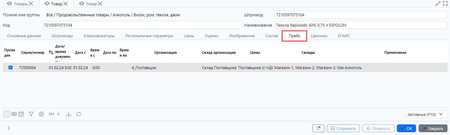 Здесь отображаются прайсы, в которых есть данный товар. Подробнее о прайсах.