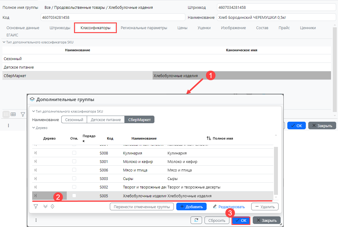 Рис. 4. Привязка товара к дополнительному классификатору.