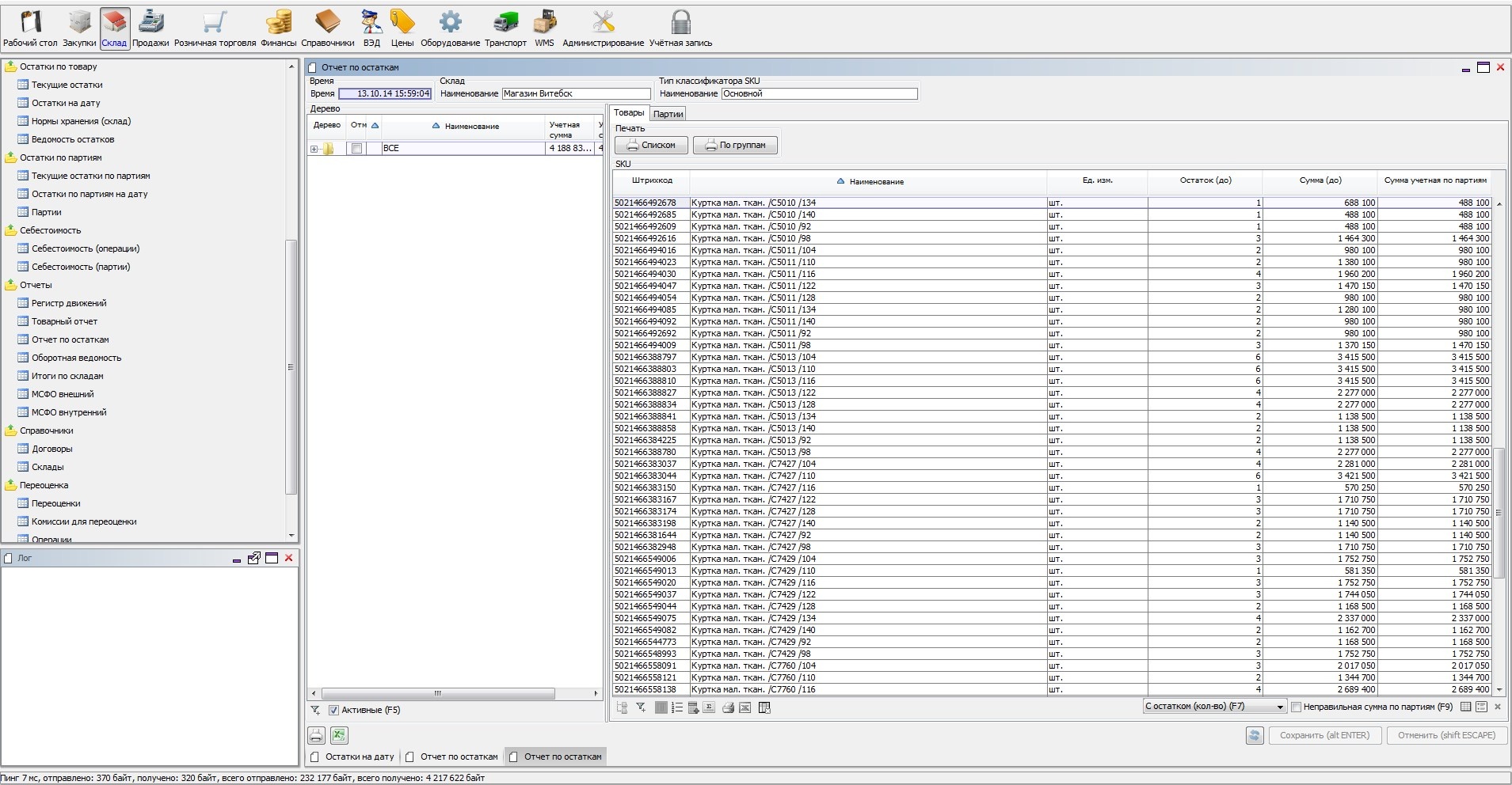 Заходим на форму СКЛАД - Отчеты - Отчет по остаткам