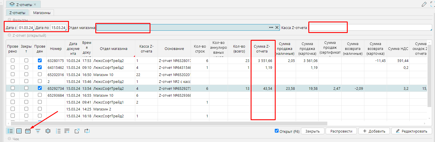 Ставим нужную дату и сверяем общие суммы по каждому магазину.