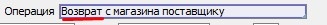 • в поле "Операция" необходимо выбрать вид возврата: 1 - поставщику, 2 - складу , 3 - другому магазину.