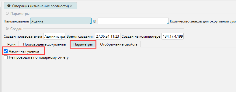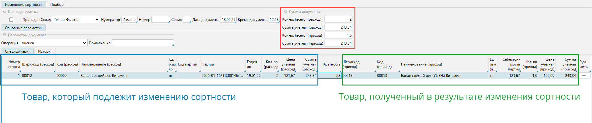 Наименование (приход) - в этом поле указывают товар, который получают в результате изменения сортности. Если это операция уценки товара, то поле может заполнятся автоматически.