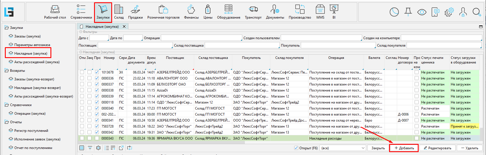Для заполнения спецификации нам необходимо внести на форму перечень товаров поступающих на магазин.