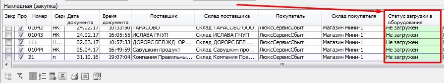 Становимся на нужную накладную и нажимаем "Загрузить в оборудование"