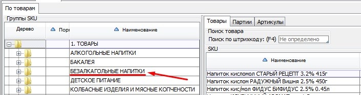 *Примечание: на форме так же можно отображать список товаров в разрезе партий и по артикулам: