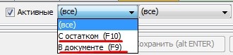 в документе - фильтр отбирает товары уже находящиеся в спецификации, т.е. только те которым уже проставлено кол-во.