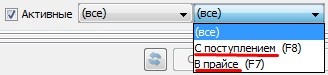в прайсе - фильтр отбирает товары которые имеются в согласованном с поставщиком прайсе цен (ПСЦ).