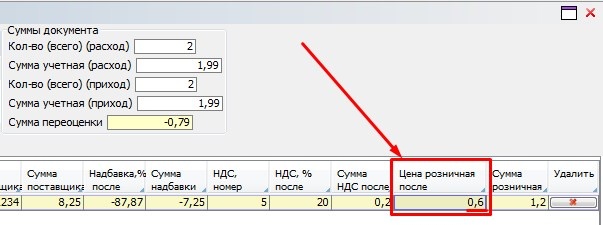 - Далее мы должны установить новую розничную цену в колонке "Цена розничная после"